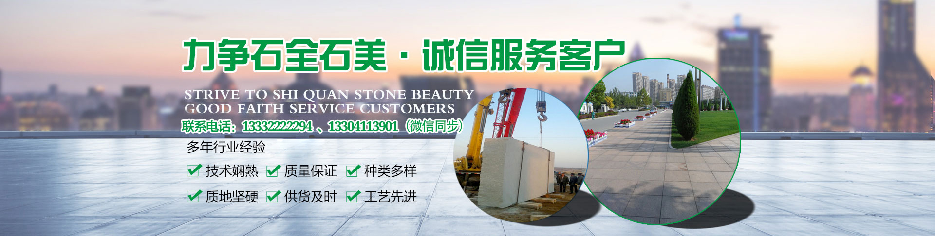 “力爭石全石美,誠信服務客戶”是保林石材的經(jīng)營宗旨,竭誠為各界朋友提供優(yōu)質(zhì)的產(chǎn)品和周到的服務,互利合作,共同發(fā)展。